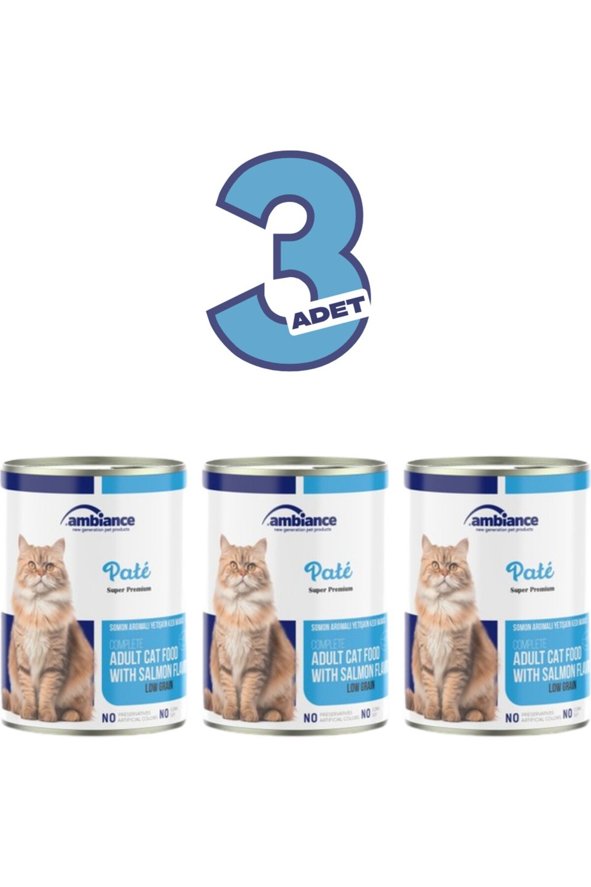 3 Adet Yetişkin Kediler Için Somonlu Yaş Mama 400 gr