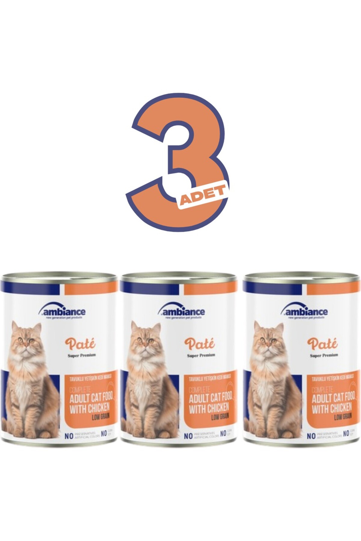 3 Adet Yetişkin Kediler Için Tavuklu Yaş Mama 400 gr