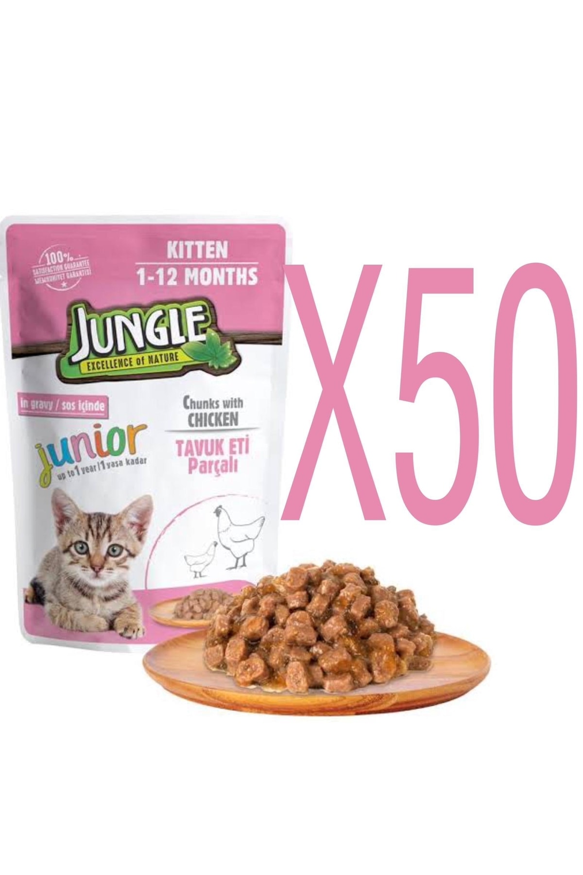 Jungle Kitten Tavuk Eti Parçalı Pouch Mama X50 Adet