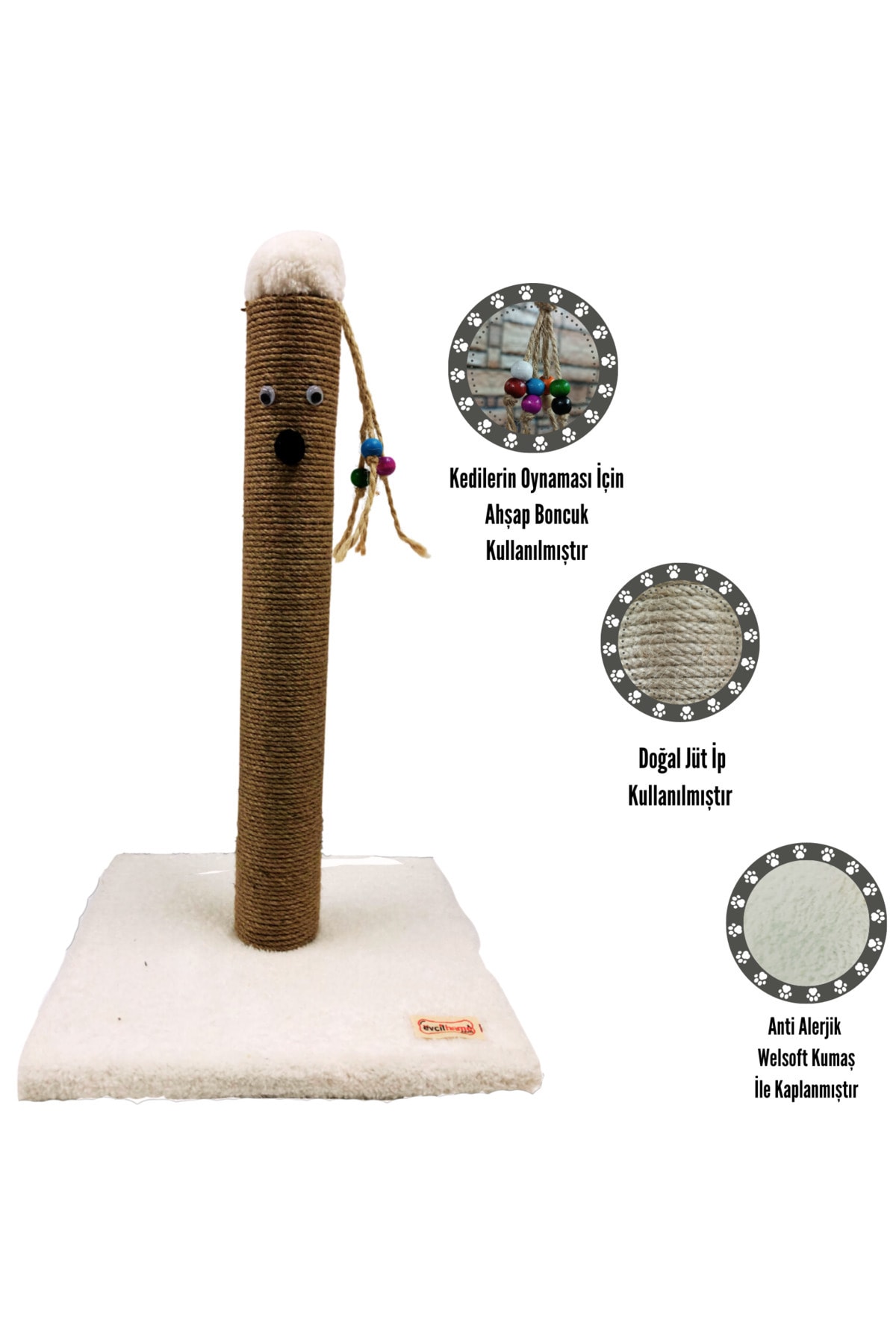 Evcil Home Kedi Tırmalama Sütunu ürünümüz kedilerinizin vazgeçilmezleri olan tırmalama ve oyun ihtiyaçlarını karşılamak üzere tasarlanmıştır ; ; Her yaşta kedi rahatlıkla kullanabilir. ; ; Dostlarımızın sağlığı düşünülerek polyester veya kimyevi madde içermeyen %100 doğal kendir halat kullanılmıştır. ; ; Kullandığımız hammaddeler yerli üretim ve doğal olup kalitesiz ithal ürünler kullanılmamaktadır. ; ; Ahşap gövde üzerine welsoft kumaş kaplanmıştır. ; ; Welsoft kumaş üzerine doğal ve dayanıklı jüt halat sarılmıştır. ; ; Bulunduğunuz alanlardaki eşyalara zarar vermemesi için üretmiş olduğumuz ürünlerin tabanları kaplıdır. ; ; %100 müşteri memnuniyeti garantilidir ; ; Üretmiş olduğumuz ürünlerimiz extra hijyenik bir şekilde sizlere ulaşması için özenle paketlenmiştir. ; ; Soru cevap kısmından dilediğiniz rengi ekletebilir, ürün üzerinden dilediğiniz değişikliği talep edebilirsiniz. ; ; Ürünümüz yetişkin ve yavru kedilerinizin tırmalama ihtiyaçlarını karşılayacak biçimde tasarlanmış, ; ; Farklı renkleri mevcuttur. ; ; Ürünlerimiz Kedinizin tüm enerjik ihtiyaçlarını karşılaması ve eviniz için dekoratif olarak da kullanabileceğiniz bir üründür. Kediler doğada çok fazla tırmandıkları için tırnakları bu tırmalamalar esnasında törpülenerek hem kısalır hem de sivrileşir. Mobilyaların zarar görmemesi için rahatlıkla tırmalayabilecekleri oyun alanlarına ihtiyaçları vardır. Kediler için tırmalama, yatak ve yuvalar üreten yerli butik fabrikamızda, en iyi Hammaddeler seçilerek özenle üretilir. Farklı mağazalarda olduğu gibi parça malzemeler kullanmamaktayız. ; ; Dostlarımızın sağlığına önem verdiğimiz için birinci sınıf ,yerli üretim ve doğal ürünleri birinci sınıf işçilik ile sizlere sunuyoruz. ; ; WELSOFT KUMAŞ – özelliğe sahiptir. Nefes alır. – Sıcak tutar. – Rahat ve yumuşak bir dokuya sahiptir. -Leke tutmaz ve kolayca silinebilir.. *Üretmiş olduğumuz ürünlerimizin gönderimini yaparken sağlam, temiz ve dikkatli biçimde paketlemekteyiz *Üretmiş olduğumuz tüm ürünlerimizi öncelikle kendimiz montajlamaktayız daha sonra paketleyerek sizlere göndermekteyiz ; ; Ürün Ölçüleri: ; ; Taban ölçüsü : 30X30 cm ; ; Yüksekliği :50cm; ; Ağırlığı 2,4 kg ; ; Evcil Home kedi tırmalama rampası canlı dostlarımız için özel olarak tasarlanmıştır. ; ; Evcil Home firmasından alacağınız her ürün için canlı dostumuzun ihtiyacına yönelik bir hediye gönderimi sağlanmaktadır. ; ; Evcil Home firmasından alacağınız tüm ürünler adınıza fatura kesilerek gönderilmektedir. ; ;