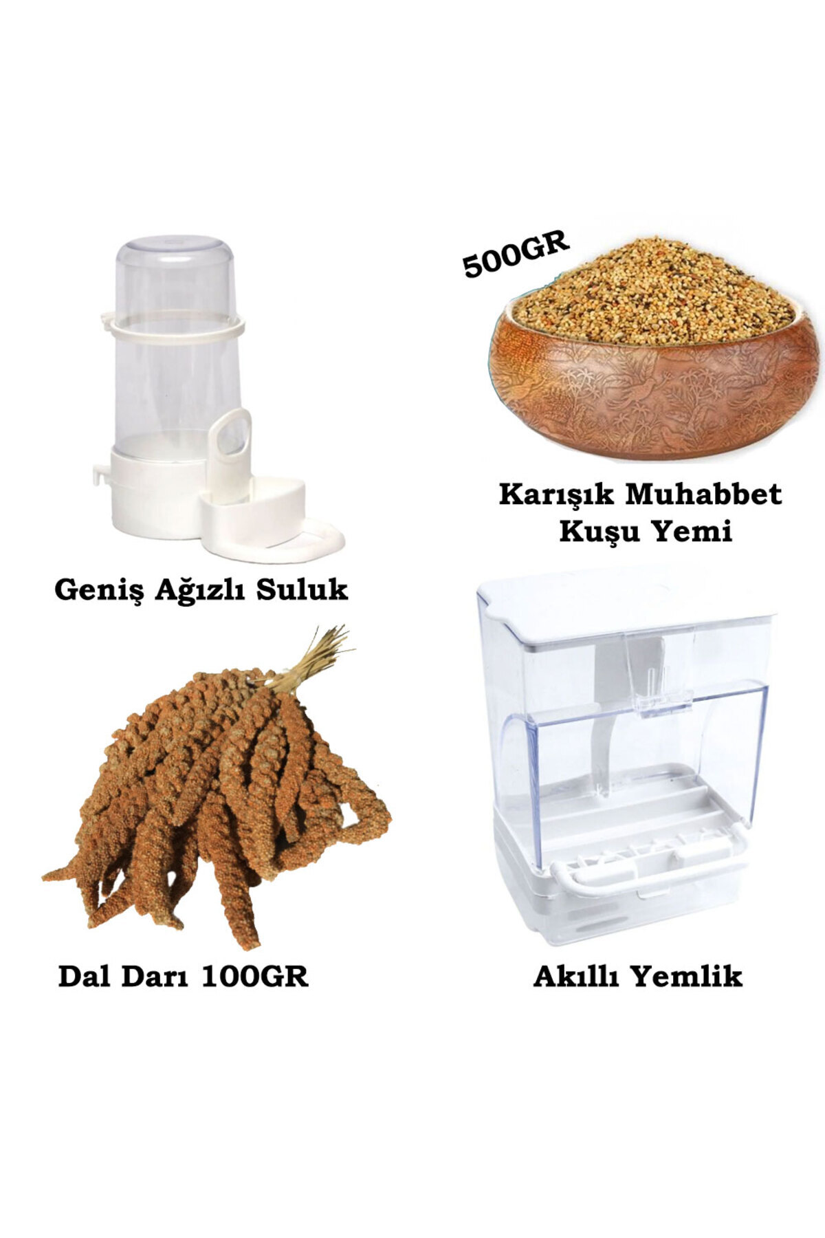 Muhabbet kuşlarının doğal beslenme alışkanlıklarına uygun olarak özel olarak formüle edilmiş, yüksek kaliteli muhabbet kuşu yemleri içerir; Granül formu sayesinde, muhabbet kuşlarının kolayca tüketebileceği ve sindirebileceği bir yapıya sahiptir; Akıllı yemlik tasarımı ile muhabbet kuşlarının yemlerini daha kontrollü bir şekilde tüketmelerini sağlar, aşırı yem tüketimini önler; Suluk aparatı, kuşların su ihtiyacını karşılamak için pratik ve hijyenik bir çözüm sunar; temizliği kolaydır ve suyun sürekli taze kalmasını sağlar; Dal darı, muhabbet kuşlarının doğal davranışlarını taklit eden bir yemdir ve onların doğal beslenme alışkanlıklarını destekler;