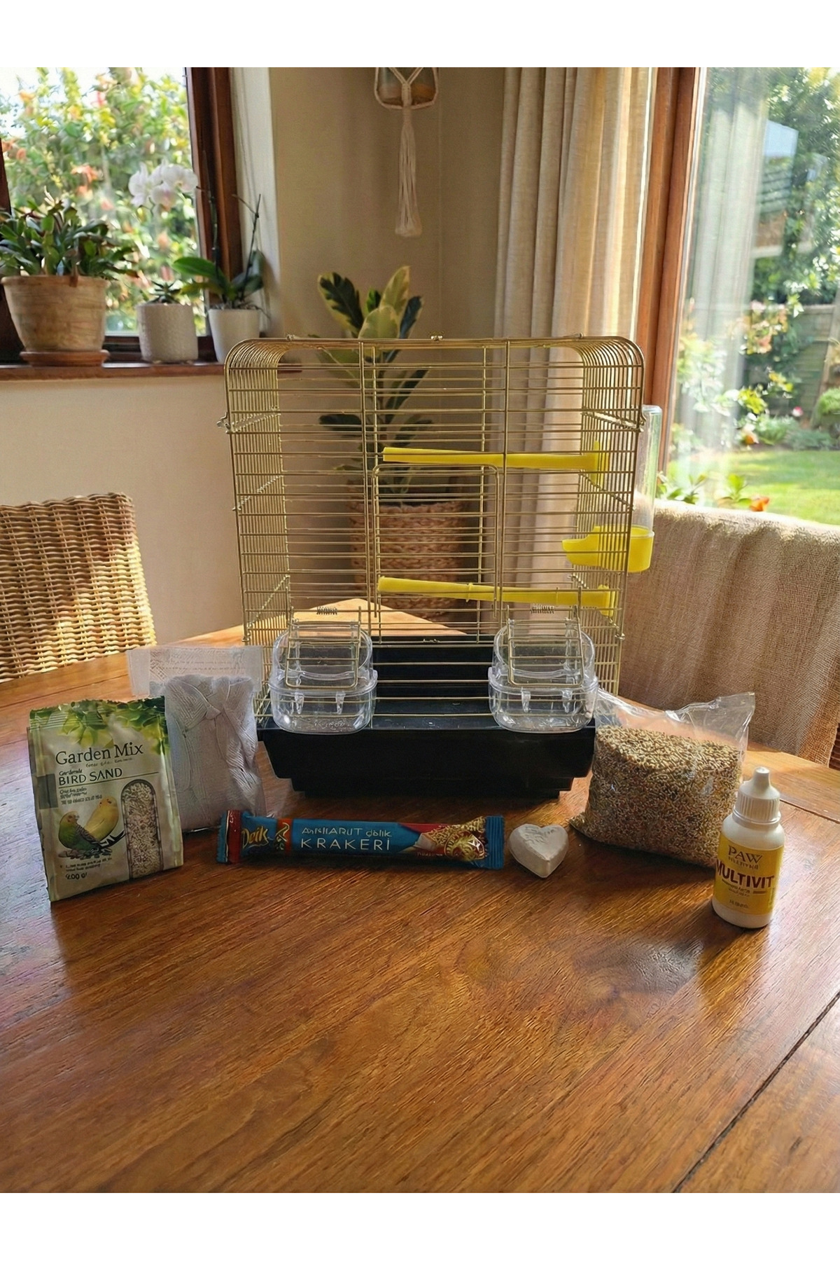 Muhabbet Kuşu Kafesi Süper Full Set – Yem, Tül, Vitamin ve Tüm Aksesuarlar Dahil Başlangıç Paketi
