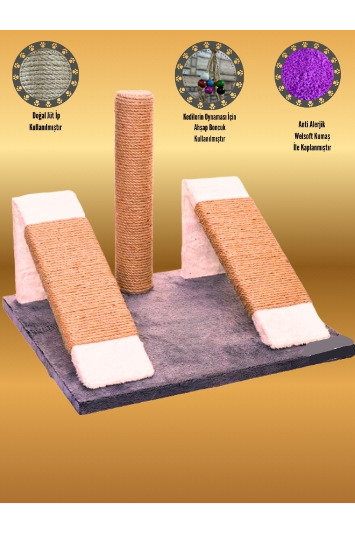 Petse Çift Rampalı Kedi Tırmalama 2+1 Kedi Tırmalama Mobilyası