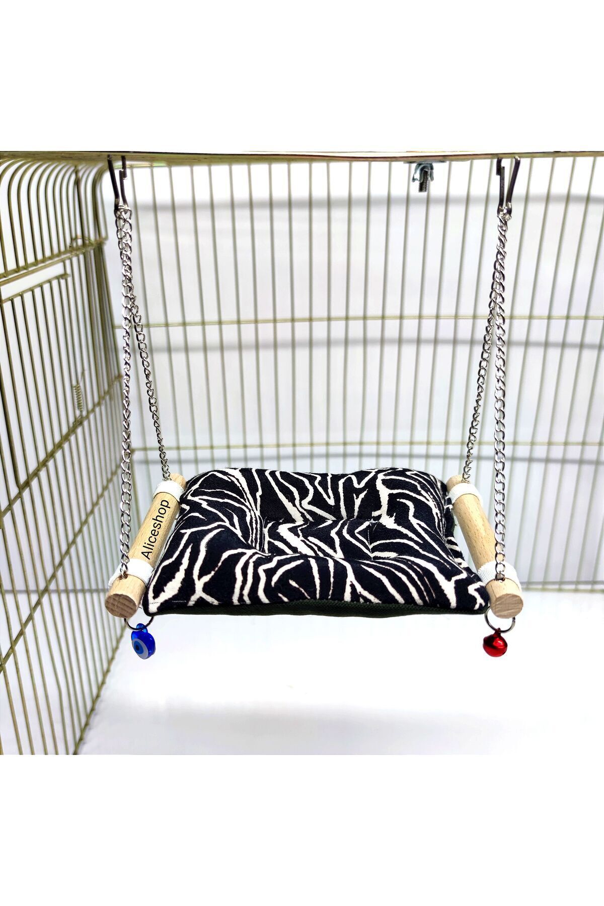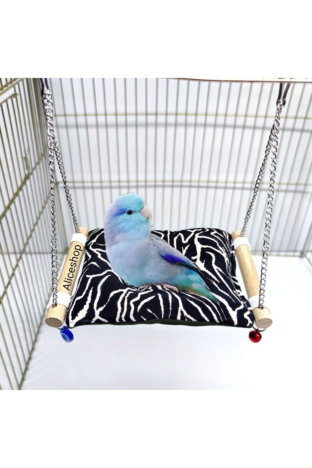 Kafes içerisine zincirlerinden asılarak salıncak şeklinde kullanılır Sultan sevda cennet papağanı muhabbet kuşu ve boyutlarındaki kuşlar için uygundur; içerisi yumuşacık elyaf dolgulu minik dostlarımızın rahatı çok önemli; Aliceshop tarafından Her kuş için eglenceli dinlenme ve uyku yeri olarak tasarlandı; elde ve makinede yıkayabilirsiniz. ;