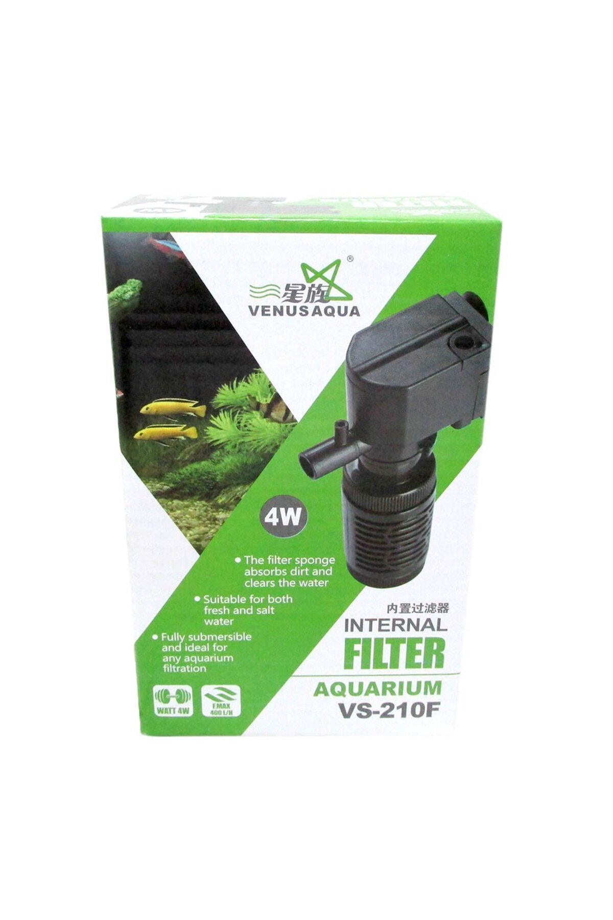 VS210F Venusaqua Akvaryum İç Filtresi 500 lt Akvaryumlar için saatte 400 litre kapasiteye ve 4 W enerji tüketimine sahip akvaryum iç filtre.; Hem tatlı hem de tuzlu suda kullanıma uygundur.; Tamamen su altında çalışacak şekilde tasarlanmıştır.; Kutu içerisinde hava aspirasyonu için gerekli olan hava hortumu ve hava şiddetinin ayarlaması için özel ayarlı tıpa bulunmaktadır.