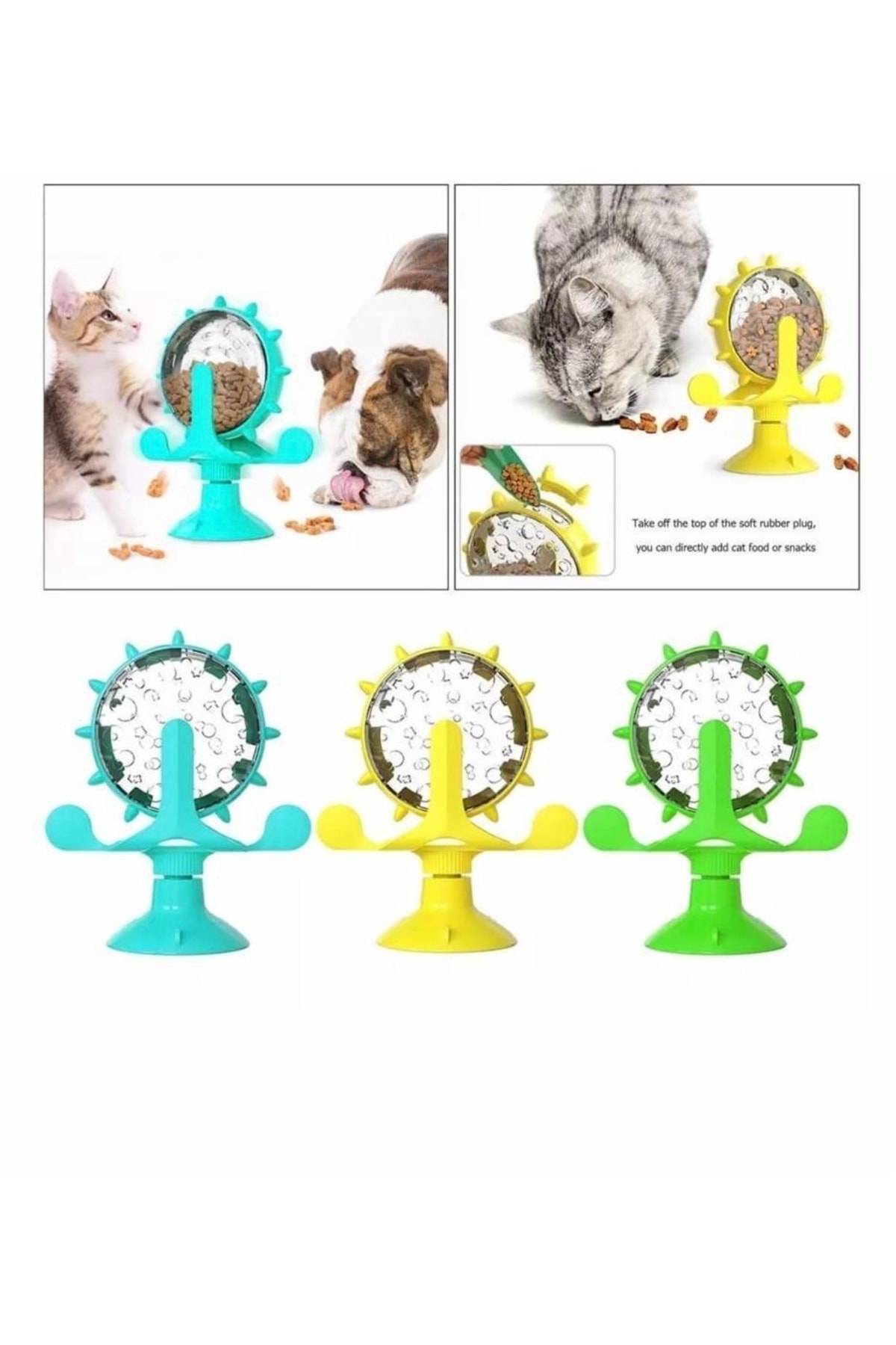 BAMBU pet ÇARKIFELEK Kedi ödül maması oyuncağı, içerisine çeşitli ödüller ve mama konulabilen, kedi ödül, eğlence ve oyalama oyuncağıdır. ; * ÇARKIFELEK kedi ödül maması oyuncağının en önemli özelliği, vakumlu yapısı sayesinde yer, cam gibi çeşitli yüzeylere sabitlenebiliyor olmasıdır. ; * Örneğin yıkanmayı sevmeyen ve yıkamada zorluk yaşadığınız bir dostunuz varsa, kedi ödül oyuncağını onun en sevdiği atıştırmalıklarla doldurarak banyo camına sabitleyebilir ve oyalanmasını sağlayablirsiniz. ; * ÇARKIFELEK Kedi ödül maması içerisine çeşitli kedi ödül mamalarıyla doldurabileceğiniz gibi, kedi kuru maması da koyabilirsiniz. ; * ÇARKIFELEK Kedi ödül oyuncağı, 17 cm yüksekliğindedir, ÇARKIFELEK vakumlu taban sayesinde yere yapışır. ; Üzerinde bulunan deliklerle daha fazla merak uyandırır ve dış yüzeyinde bulunan açılabilir kapak ile içerisine ürün yerleştirilebilir. ; Kapak açılarak dostunuzun oynadıkça yere saçılan mamaları yemesi keyifli hale gelecektir. ; Vakum aparatı ıslatılarak yüzeye sabitlenmeli bu şekil dayanıklı vakumlama gerçekleşecektir. ; ürünümüz 3 renkten oluşup stoklar dahilinde gönderim sağlanmaktadır.;